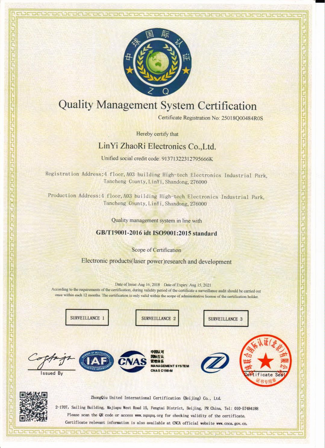ShanDong ZhaoRi Electronics Co.,Ltd is a high-tech enterprise, located in the core area of electronically developed regions - Linyi, Shandong,China.